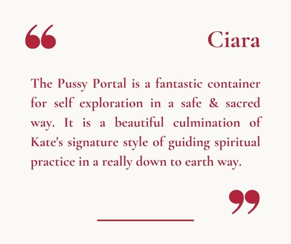 You can use as much or as little of the course as you choose. Take from it what you most need and what is most serving and leave the bits that don't. You can take breaks and come back to the course whenever you need to. If you can’t show up for any live, you will have the recordings accessible in the portal. You can repeat the practices as many times as you want too! You will have access to the portal for 4 months after the portal ends. - Access to your special Facebook community container of you and the other queens on the course, who are right there with you. These women will become your pussy sisters, right there by your side, witnessing you whilst you up-level, have challenges and breakthroughs and who will practice right alongside you!